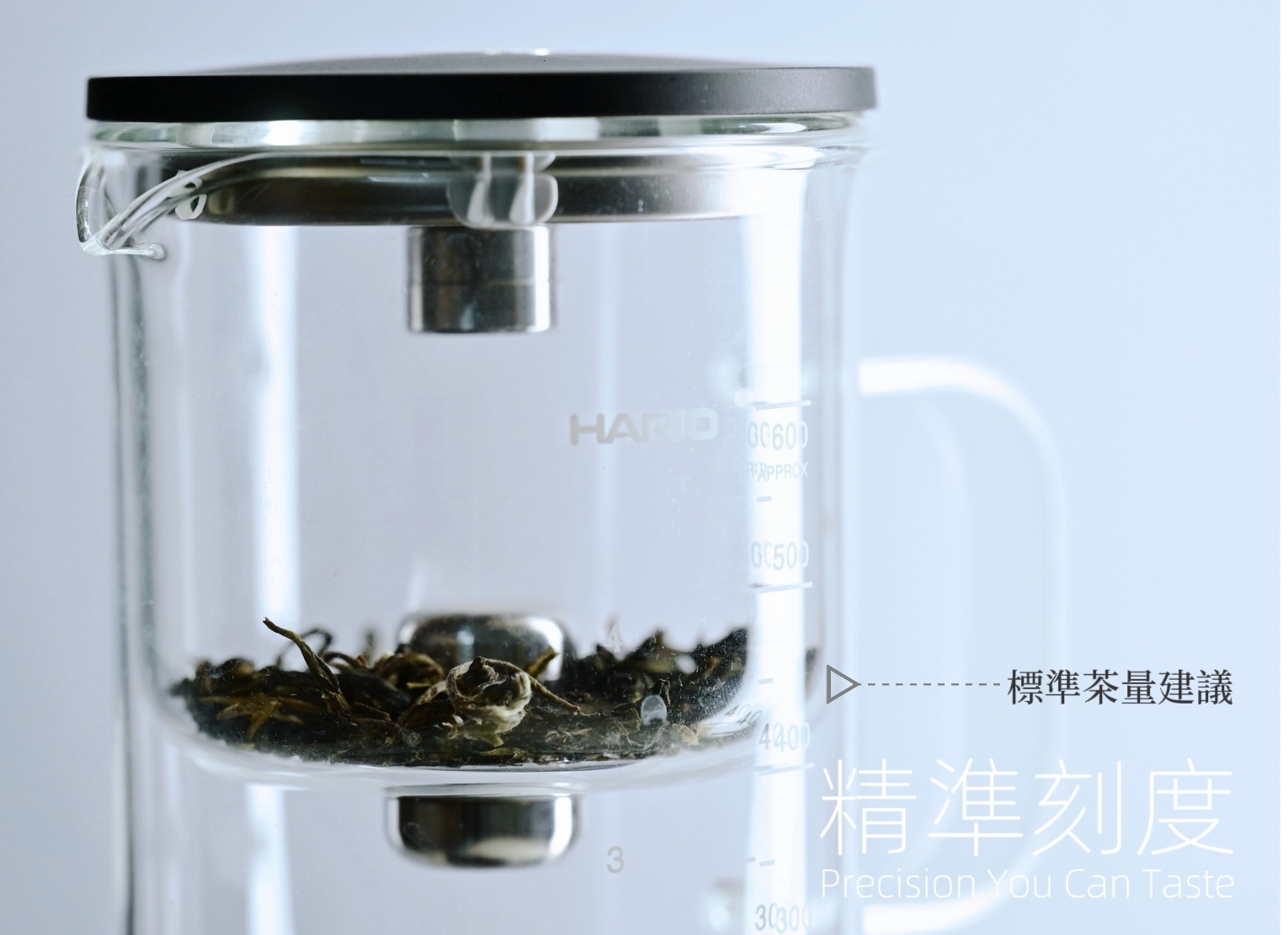 沖泡以「1:50」(250ml熱水放3-5g茶葉)為基準,約是建議茶量標準線,以達茶葉舒展空間及最佳風味。